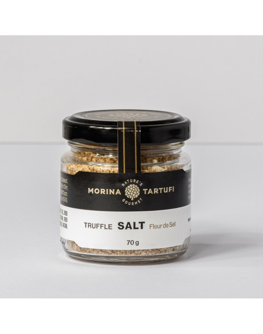 Experience the luxury of black truffles in your own kitchen with Morina Tartufi Truffle Salt. This gourmet blend combines pure sea salt from the Ionian Sea with aromatic black truffles (Tuber Melanosporum Vitt) for an intense, indulgent flavour that transforms any dish.